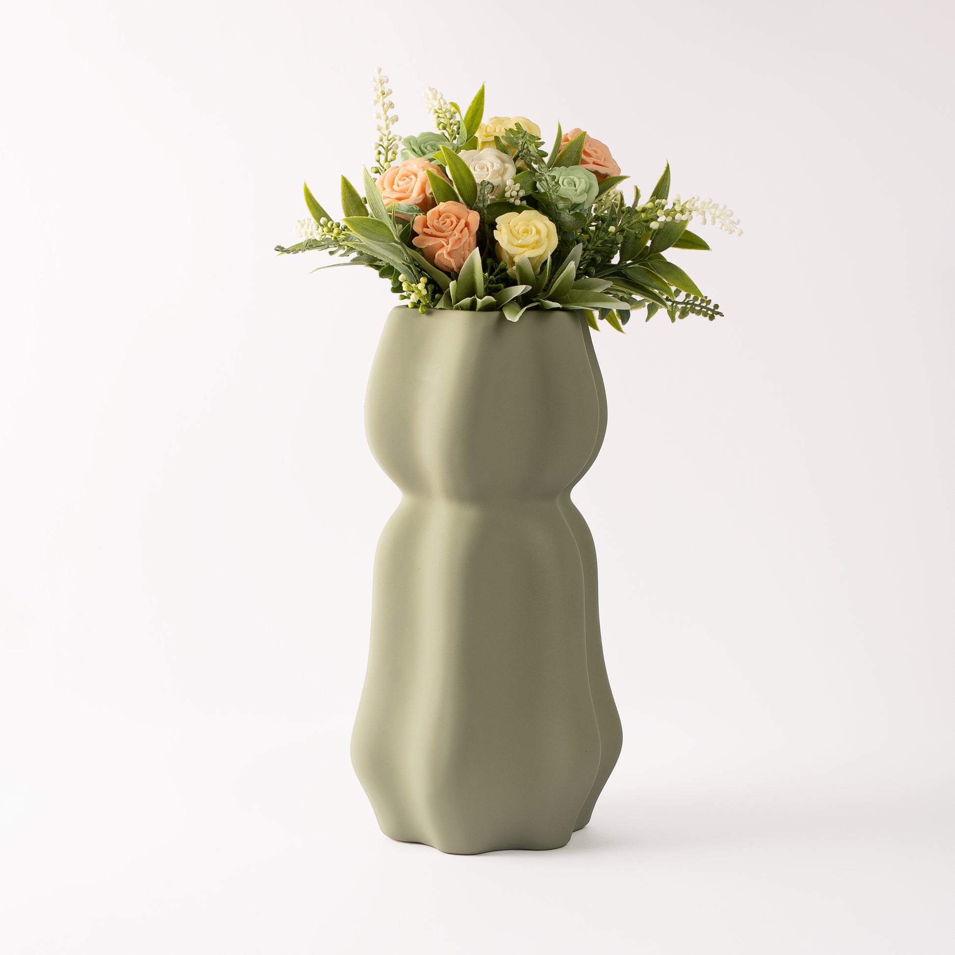 Colorful Soap Bouquet in Long Grey Ceramic Vase | Elegant Handmade Décor